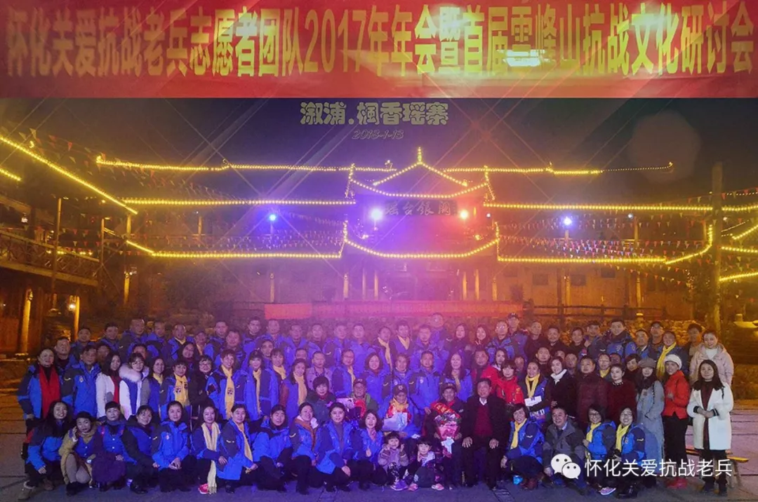 怀化关爱抗战老兵志愿者2017年会 暨首届雪峰山抗战文化研讨会纪实 怀化关爱抗战老兵志愿者团队,是怀化地区对抗战历史和抗战老兵包含敬畏的爱心人士自发组织的公益团队。十余年来,团队在关爱抗战老兵弘扬抗战文化的路上砥砺前行,融汇愈来愈多了社会力量,为抗战老兵和抗战历史正名致敬。2018年1月13日,志愿者们欢聚在风景秀美的溆浦县枫香瑶寨,籍2017年年会共叙既往,筹划开来。