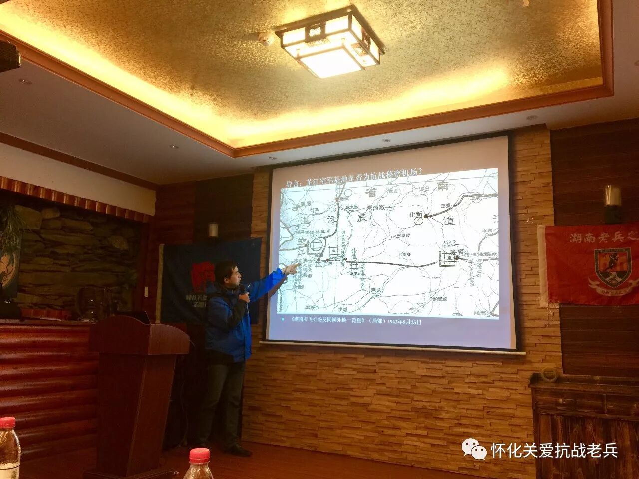 谭主任带队察看青山界烈士墓地及战地 武思琪,谭雄,张青松三位学者分别以《忠魂归国与怀化抗战》、《怎样走访抗战老兵和做好老兵口述》、《芷江与飞虎队》三个主题做了精彩详实的演讲。志愿者黄美容、舒勤分别做了团队年度工作总结和年度财务报告。之后,志愿者团队为会同县飞宇竹木经营部 湖南九牧湘西运营中心 湖南诺曼欧有限公司 溆浦云达商贸 辰溪县黄马洞酒业 溆浦县柒和时尚餐饮等爱心企业授牌,感谢他们一年来对抗战老兵和关爱事业的支持与奉献。 学者授课