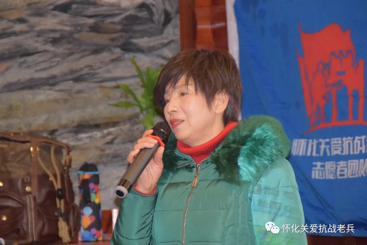 怀化市慈善办主任蒋萍主任致辞并与老兵合影 怀化市慈善办主任蒋萍主任为老兵送上致敬